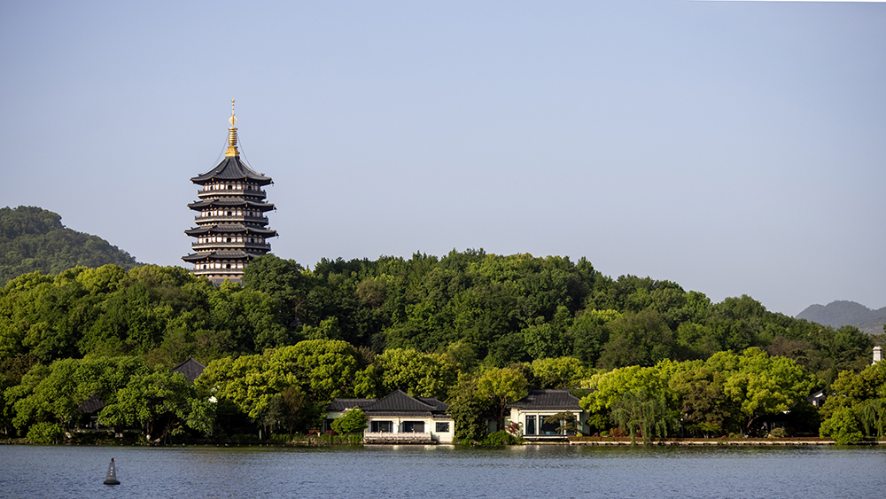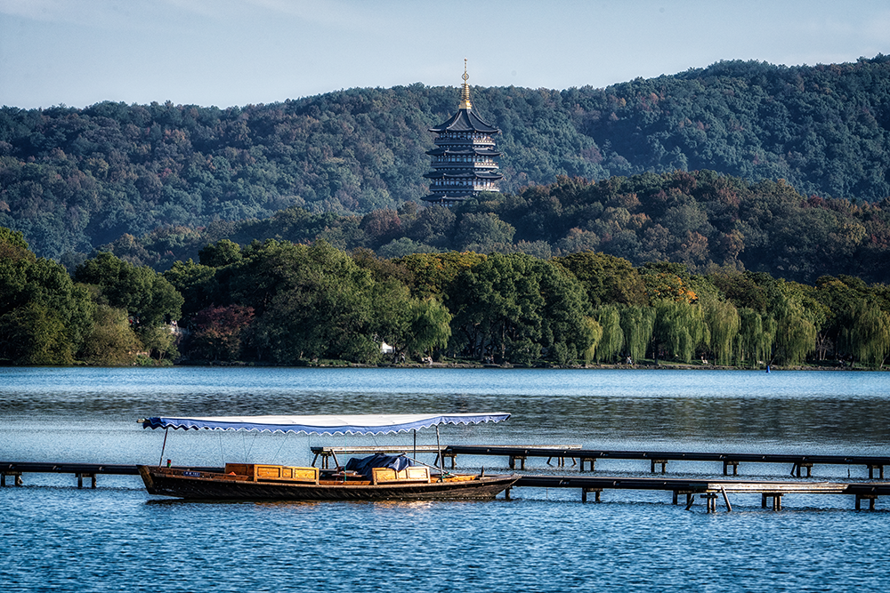红墙,乘【西湖游船】画舫环湖游,【雷峰塔】外观,西湖新十景之一